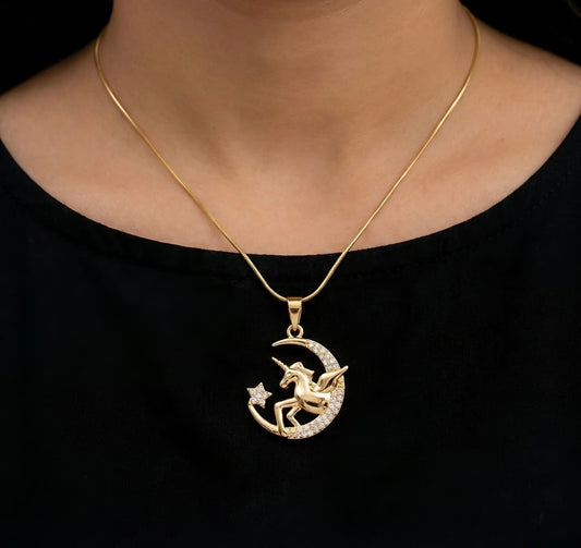 Unicorn Moon Necklace - Gold Plated Crystal Pendant