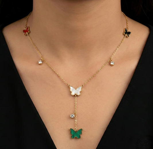 Multi-Butterfly Y-Necklace - Gold Plated Enamel Crystal Lariat