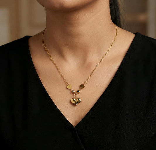 Triple Heart Pendant Necklace - Gold Plated with Crystal Accents