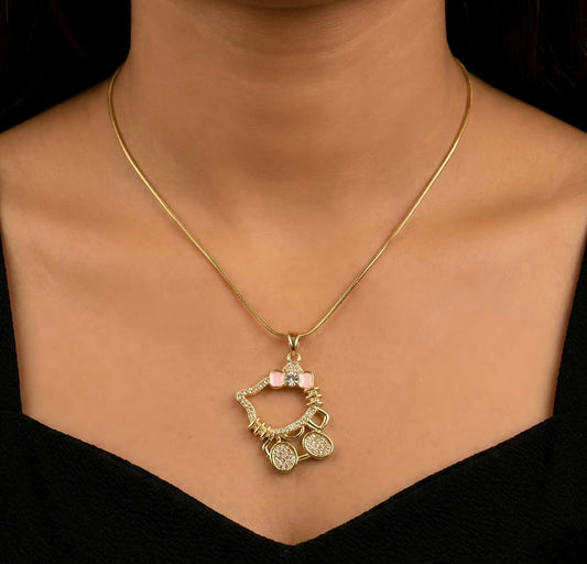 Hello Kitty Pendant Necklace - Gold Plated Crystal Charm