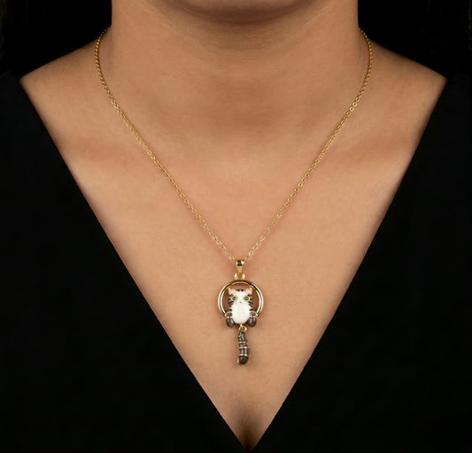 Cat Pendant Necklace - Gold Plated with Crystal Drop Charm