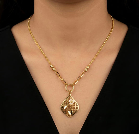 Textured Diamond Pendant Necklace - Gold Plated Mixed Chain Design