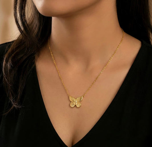 Butterfly Pendant Necklace - Gold Plated with Detailed Wings