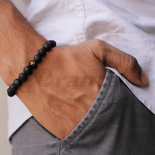 Om Loose Bracelet For Men With Black Line (8 Inch)